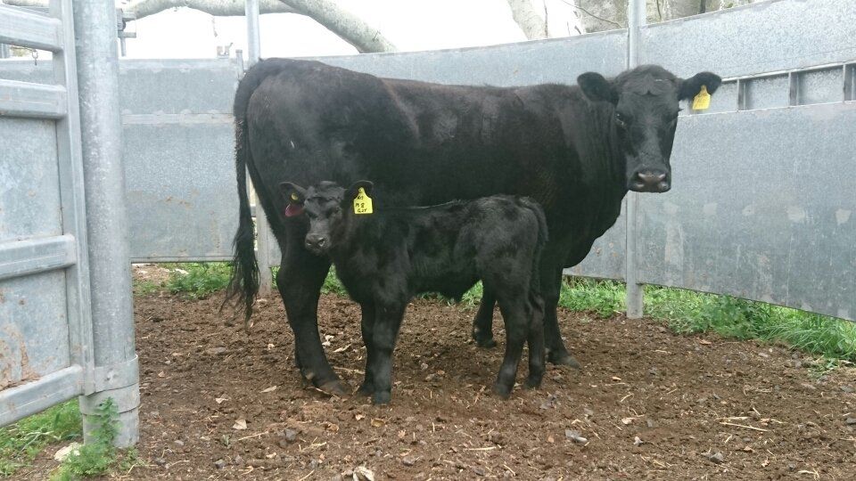 A241 daughter with herTe Mania Emperor heifer calf at foot