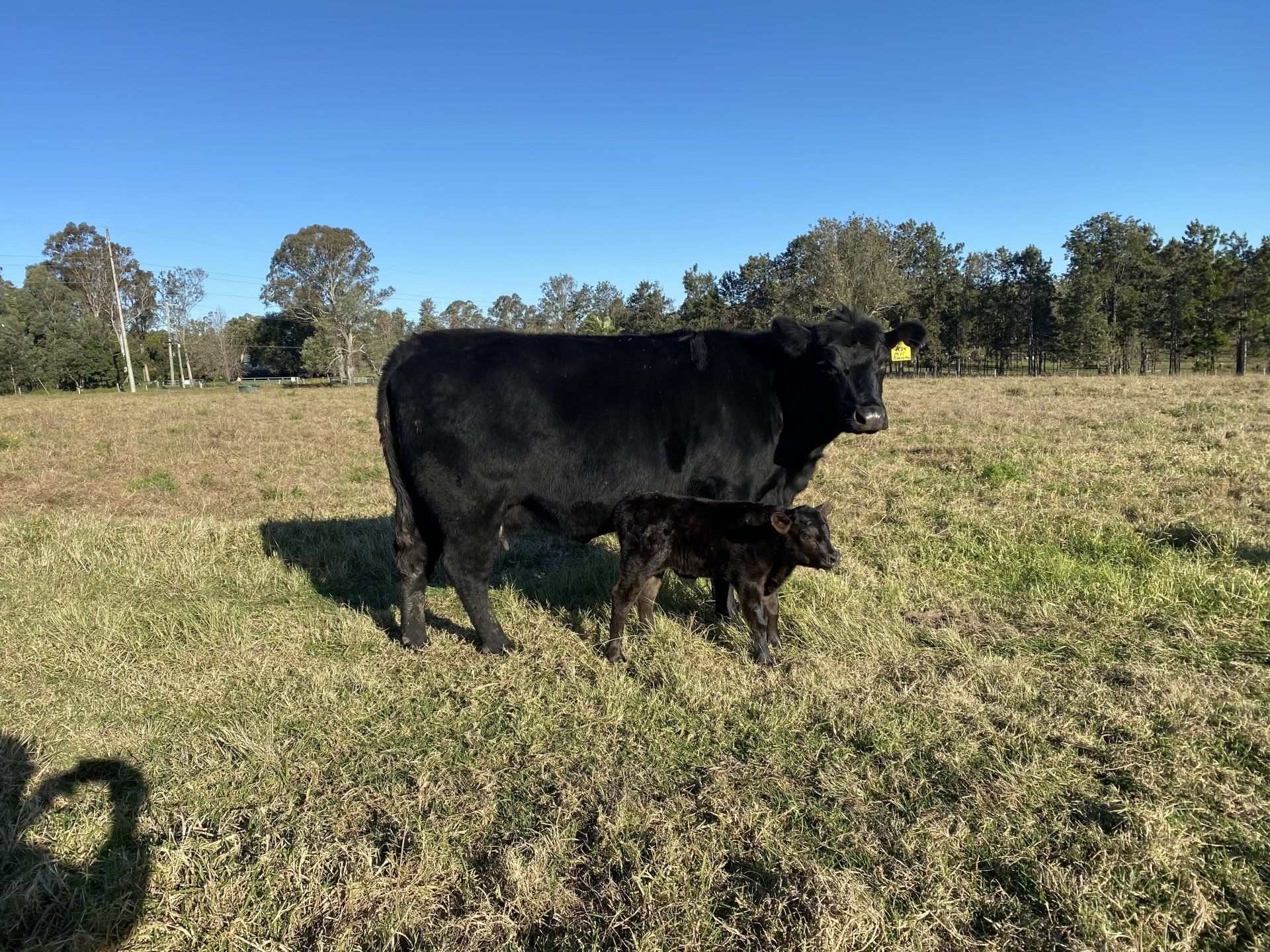 Millah Murrah Flower C5 with Dunoon evident Heifer at foot, purchased in partnership with Burenda Angus at the Millah Murrah record breaking Stud Cow Sale in April 2013.